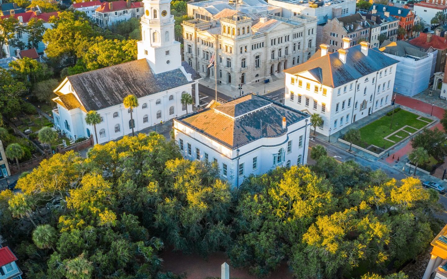 Washington Square is a peaceful park in downtown Charleston surrounded by historic landmarks and monuments. Located near The Vendue, it offers a quiet place to relax while exploring the city’s rich history and architecture.